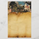 Velho pergaminho marrom clássico, obra-prima de arte .Rua italiana Renascentista clássica. George lutando contra o dragão em um cavalo branco, pintando por Paolo Uccello namorando por volta de 1470. National Gallery, Londres