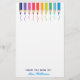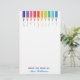 Linda linha de lápis coloridos deixando um bonito rabisco colorido, espalhado pela página em cores bonitas do arco-íris para decorar o topo desse papel de carta personalizado para uma escola primária ou professora de arte. Personalize com seu nome ou outro texto na parte inferior do bloco de notas em roxo e azul.