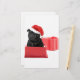 Pug preto em uma caixa de presente vermelha que veste um chapéu vermelho do papai noel para os feriados