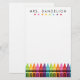 Um design de papelaria muito bonito e colorido para um professor de escola primária. Nome simples em caracteres de bloqueio preto com uma borda de lápis arco-íris. Perfeito para o jardim de infância ou professores do ensino fundamental.