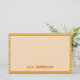 A bright, hand drawn yellow, orange,vermilion and green striped pattern borders this personalizable sunny stationery sheet.