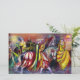 Elegante, whimsical, design artístico com noturna musical mágica, lua, fábricas, cavalos em verde-azul vibrante, vermelho, amarelo, cores brancas .Pintura acrílica na canvas, pintura mestiça de Búlgaro Lumini (c)