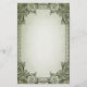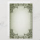 Beleza clássica com este design de papelaria de safra em tons verdes sábios. Folhas elegantes balançam e se enrolam ao redor da fronteira.