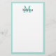 Papelaria Seaglass Sea Green Border Monogram Name Initial