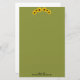 Personalize esta papelaria adornada com dois grupos de três fotografias de girassol centradas no topo sobre um fundo verde texturizado. Basta preencher suas informações, remover o texto do modelo ou clicar em personalizar para alterar o estilo da fonte, a cor e o tamanho desejados.