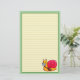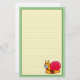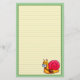 Papel de carta que caracteriza um caracol vermelho e amarelo feliz que embreia um envelope selado com um coração em sua boca. Um postbag do carregar e está pronto para levar sua mensagem.