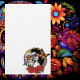 Um crânio de açúcar atrás de uma mulher vestindo o dia da maquiagem do crânio de açúcar morto. Estilo Art Nouveau.