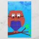 Uma coruja tartana moldada por corações. Imagem digital. Personagem de desenho animado original.