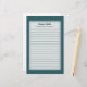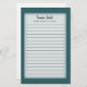 Papel de carta revestido translúcido personalizado com espaço para seu nome / nome comercial e endereço. O fundo é um teal. Texto, fonte, tamanho da fonte, cor e posicionamento são completamente personalizáveis.