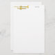 Estes artigos de papelaria caracterizam um tema da música - uma trombeta dourada ilustrada que mostra detalhes do instrumento contra um fundo cuja a cor você possa mudar, e o texto que é customizável.