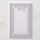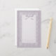 O papel de papelão doce apresenta fundo bonito damask com cobertura de rendas e sotaque bonito de arco em tons de lavanda pastel.