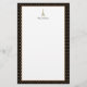 Este artigo em estilo Paris chic apresenta uma Torre Eiffel dourada, com seu nome em preto abaixo. As bordas do papel de carta são decoradas com um fundo preto e bolinhas de cor ouro de vidro. Uma design muito francesa, feminina e ousada.