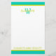 Esta papelaria de monograma fofo apresenta um quadro de turquesa e verde limão brilhante com uma turquesa e um monograma verde que você pode personalizar com sua escolha de nome e inicial.