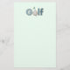 Para amantes do golfe e fãs do esporte - logotipo Golfing em máscaras macias de azul e de verde em artigos de papelaria pessoais.