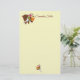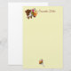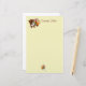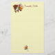 Esta bonito papelaria tem um gráfico de um urso marrom doce segurando um grande buquê de flores.