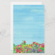 Uma bonito papelaria azul-floral, com ervilhas doces, vermelhas, molhadas, misturadas com tremoços roxos e pintas-mazes desenhadas com tinta e pintadas com aquarela.