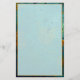 Papel de papelaria luxuoso com padrão de vidros abstrato azul e dourado manchados moldando lindamente suas letras com superfície escrevendo transparente mostrando o padrão de fundo.