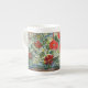 As papoilas vermelhas cobrem uma caneca branca de China de osso. Baseado em uma aguarela original. Copyright por Ruth Spector.