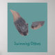 Pintura de duas lontras que nadam, impressa em posters.