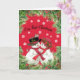 Este adorável casal de neve está em frente a um fundo vermelho com flocos de neve. Eles estão cercados por uma grinalda de sempre-verdes. O texto na frente e no interior pode ser personalizado.