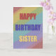 Um arco-íris feito de cruz ou tapeçaria com Happy Birthday bordado.