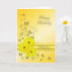 Um belo cartão de aniversário com flores margaridas amarelas sobre um fundo vibrante girando.