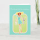 Faça seus amados rir com este cartão bonito e espirituoso do aniversário. Fronteie características de design uma mulher à moda, elegante com cabelo vermelho que vestem um vestido azul, uma colar alaranjada e os saltos, chapéu amarelo largo, e brincos pequenos do ouro. Leva sua bolsa branca em uma mão e em diversos sacos de compras em seu outro pulso. Centrou-se em um quadro verde com uma beira colorida creme. A pia batismal branca do roteiro na parte dianteira do cartão lê, "para a menina que tem tudo…" Dentro do cartão lê, "mim doou seu dinheiro do aniversário a uma causa muito maior. Mim. Feliz aniversario!" O texto do cartão é completamente customizável, assim que sinta livre mudar as mensagens, as pias batismais, e as cores da pia batismal.