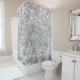 Correntes oceânicas com bolhas, cinza/cortina de solteiro prateada/branca. Os itens do banheiro estão chegando em breve.