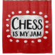 "Chess Is My Jam" é um design de texto divertido com uma forma de sotaque branca cercado por pontos brancos texturizados.