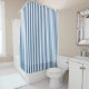Cortina de chá com listras azuis que complementaria um estilo de fazenda ou um banheiro com estilo costeiro.