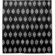 Um padrão de renda preto e branco decora esta cortina de banho estilosa. O design é de arte original.