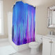 Uma cortina de chá impressionante com um design de gradiente abstrato com linhas verticais em azuis e púrpura vívidos, que lembra uma paisagem futurista.