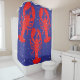 Cortina de chá inspirada náutica com 3 lagosta vermelha contra fundo azul profundo.