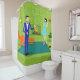 Esta cortina de chá moderna do casal do meio século olha como uma cena fora de uma comédia romântica. O estilo dos anos 60, características de design minimalistas da arte um casal atrativo dos desenhos animados que aprecia um nivelamento romântico em casa. A sala sofisticada caracteriza proeminente uma parede de pedra verde com um fogo rujir na lareira. O mobiliário na sala inclui uma laranja, a cadeira de sala de estar com footstool de harmonização, um vermelho, o pulso de disparo de parede do starburst, um amarelo, o dispositivo elétrico claro de sputnik, e uma mesa lateral alaranjada, que seja home a um verde, jogador gravado portátil. No assoalho ao lado da mesa de extremidade, um registro de vinil pode ser picar considerado fora de um cobrir kitschy do álbum. No centro do revestimento verde, há um grande, retangular, tapete da cerceta. No meio da cena, nós temos um casal muito sofisticado. Há um homem cortês em um terno dos azuis marinhos, em uma camisa branca e em um laço azul. O homem alto, escuro e considerável está olhando em seu companheiro bonito. A elegante, mulher de cabelo do corvo está vestindo um vestido do aqua do flouncy. São cada terra arrendada um o vidro de cristal de martini com uma azeitona de flutuação. Elogios! Está aqui ao nivelamento perfeito em casa!