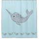 Um bonitinho cartoon narwhal preenche a área principal. Uma fileira de narvais menores, incluindo aqueles com e sem presas, encosta o fundo. O fundo é um azul-marinho pálido e gelado.