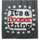 "É Uma Coisa Mais Boomer" é um design de texto fofo em cinzas com texto preto e vermelho, junto com uma forma de sotaque branco e pontos brancos texturizados ao seu redor.