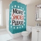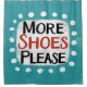 "Mais Calçados, por favor" é um design de texto divertido com uma forma de sotaque branca cercado por pontos brancos texturizados.
