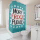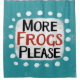 "Mais Sapos, por favor" é um design de texto divertido com uma forma de sotaque branca cercado por pontos brancos texturizados.