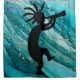 Chá preto de Silhueta Teal Turquoise Kokopelli Cortina Chá de Silhouette Kokopelli preto e Dourado Cortina de Deserto ou de Vida da Cortina de Banheiro Kokopelli. Abstrato Kokopelli, o estilo nativo americano sudoeste, tocando fundo turquesa flauta. Caverna Cortina do banheiro Petroglicphs. Kokopelli é uma divindade da fertilidade, um flautista jubilado, ganha culturas nativas americanas. Atribuído a aliens antigos ou arte tribal e inspirado em desenhos de cavernas e rochas. Excelente ideia de presente para aqueles que amam a decoração do sudoeste, e os mistérios antigos do planeta. Você pode mudar a cor do seu fundo de kokopelli para se adequar ao seu tema de banheiro.