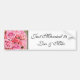 Adesivo de bombeador mostrado com uma impressão de fotografia de rosas cor-de-rosa com texto "Recem casados e nomes personalizados" Personalize este item e altere os nomes para o seu. Ou altere a cor de fundo ou altere as fontes de texto.