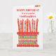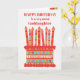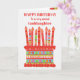 Você pode adicionar a idade a este cartão de aniversário brilhante para sua afilhada, com um bolo de aniversário de morango. O bolo tem muitas velas com diferentes padrões e há uma banda com padrões em volta do bolo com frutas coloridas de verão - morangos, framboesas, limões e fatias de laranja. Acima do bolo, a saudação, em letras vermelhas, é "FELIZ BIRTHDAY a uma Godchild muito especial" e no bolo há espaço para você acrescentar a idade, seguida de "anos de idade hoje!" em letras brancas. Sinta-se à vontade para personalizar a mensagem dentro, se desejar; você pode alterar a fonte e a cor, assim como a mensagem.