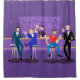 Este design retro da cortina de chá do bar alegre é roxo, kitschy, e totalmente fabuloso! Sentando-se nos barstools modernos do meio século, bebendo seu divertimento, as bebidas cor-de-rosa, estes cavalheiros dapper estão tendo tempo de um ol alegre'. O barman hunky com um bowtie cor-de-rosa já está derramando a seguinte rodada. As silhuetas do licor atômico engarrafam a linha a parede e o dispositivo elétrico claro do estilo de sputnik dos anos 60 do vintage pendura fora ao lado. O único hetero da coisa sobre este bar é o bar!