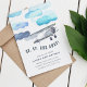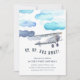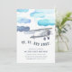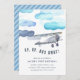 Para cima, para fora! Nossos convites de aniversário de criança de avião antigos contêm um avião a aquarela voando através de nuvens azuis e peludas. Personalize com seus detalhes de festa de aniversário abaixo. Cartões invertidos para tons em faixas diagonais azuis de tom.