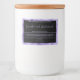 Esta etiqueta elegante e editável da caixa de sabão mede 3 polegadas por 2 polegadas (76 mm por 51 mm) e é impermeável. Ele apresenta uma borda de folha roxa falsa que envolve uma área preta com texto roxo que tem espaço para o nome da sua empresa, nome do produto, ingredientes, descrição do produto e informações de contato comercial. Esta etiqueta é concebida como uma etiqueta destinada a caixas de sabão ou bares de sabão, mas poderia também ser utilizada como uma etiqueta destinada a poços ou velas cosméticos.