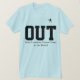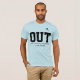" Para fora" t-shirt engraçado do tênis um t-shirt customizável do tênis com a palavra "para fora" na parte dianteira. Rotulação preta mostrada na luz - camisa azul. O termo é usado "para fora" quando uma bola de tênis é batida fora dos limites. Este é um t-shirt sarcástico.