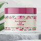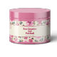 Um rótulo impermeável para produtos cosméticos e/ou de sabão com fundo brando e rosas cor-de-rosa no fundo. Personalize-o com as informações de seus negócios e produtos.