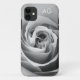 Uma bela foto ao estilo impressão de arte em preto e branco de um rosa com iniciais personalizáveis faz dessa capa de telefone uma ideia elegante e única de presente.
