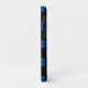 Capa de telefone do padrão do símbolo de risco biológico em preto e azul com campo de texto editável. Disponível para os modelos mais recentes de iPhone e Galaxy.