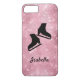capa de telefone de patinagem de gelo personalizada, cor-de-rosa, para patinadores de figuras (raparigas e rapazes) - para carregar da vossa paixão em toda a parte.Cores: Preto sobre fundo brilhante cor-de-rosa.Design: Par de skates numéricos + personalize com o nome da patinadora de gelo.