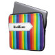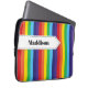 Esta brilhante bolsa de laptop de padrão listrado do arco-íris tem uma faixa branca com detalhes de costura em preto no topo. Ele é personalizado com um nome ou qualquer texto que você queira adicionar.